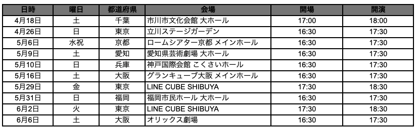 ファンクラブ、コンサート主催者、ならびにチケット販売業者は一切の責任を負いかねます。