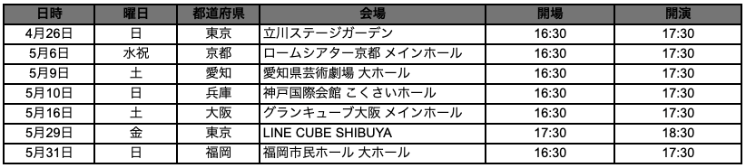 ファンクラブ、コンサート主催者、ならびにチケット販売業者は一切の責任を負いかねます。